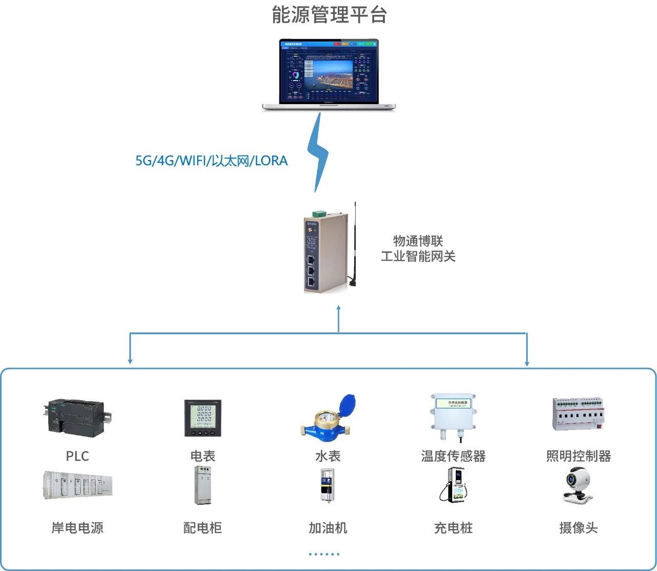 物通博聯提供LORA無線終端+數據采集網關”的解決方案。現場高桿燈控制箱的DIDO連接LORA無線終端,LORA無線終端能夠采集高杠燈開關信息并通過LORA無線網絡傳輸到數據采集網關中,數據采集網關則部署到港口信息化監控中心內,通過以太網接入管理平臺中,從而實現兩者的組網通信,為管理人員提供高桿燈遠程監控、異常告警、遠程控制與數據分析等功能,助力提高工作效率與管理水平。